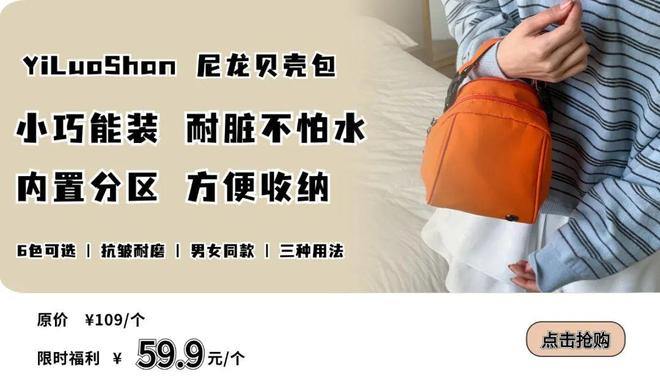 这波福利价并不是天天有!外面卖109的尼龙贝壳蛋蛋包,在我们这里只需59.9元!