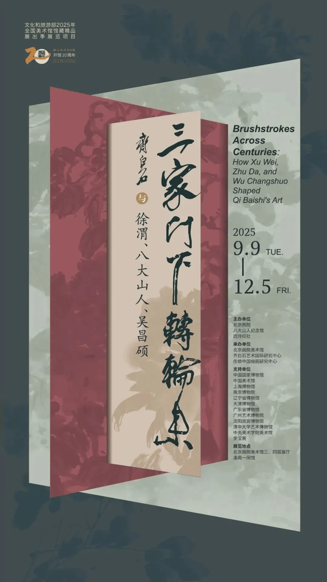 展览以齐白石对三家的致敬与师学为轴,展出了徐渭、八大山人、吴昌硕、齐白石作品70余件套,通过“百代同辉”“萍翁造化”“缶庐铁笔”“青藤雪个”四个单元,梳理了中国大写意花鸟画自明清至近现代的风格演进。